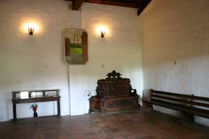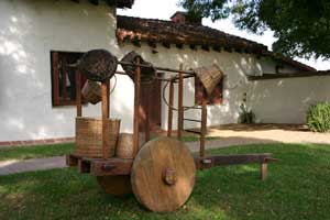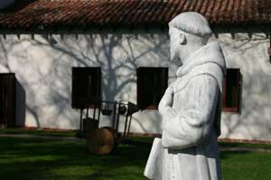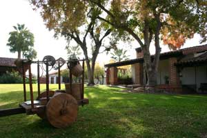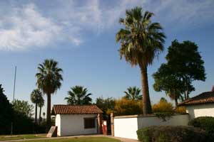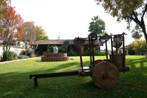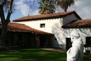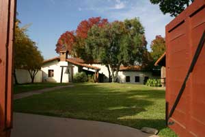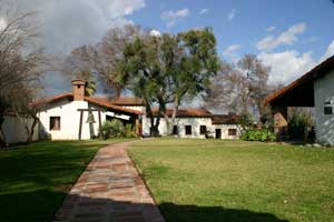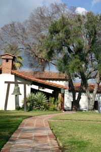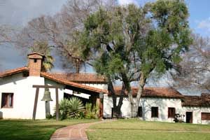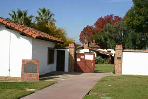 Estancia San Bernardino was an outlying rancho to Mission San Gabriel Arcánge. There is a debate as to whether the San Gabriel Mission outpost in San Bernardino was an estancia or an asistencia. One theory is that it became referred to as an asistencia in the 1930s rather than as an estancia in order to make it sound more important and thus, receive more restoration funding. It was probably an estancia on its way to becoming an asistencia when the mission era ended with Mexican independance and secularization in 1834. Had the second, inland, chain of missions been established, it would probably have been a link in that chain. An asistencia is defined as "a mission on a small scale with all the requisites for a mission, and with Divine service held regularly on days of obligation, except that it lacked a resident priest." Since the Plaza Church at Pueblo Los Angeles fitted that definition, the two priests assigned to Mission San Gabriel would have been occupied with administering the main Mission and its western asistencia. They lacked the time to administer similarly to an eastern asistencia. Thus, San Bernardino was never upgraded to an Asistencia. In the 1920s and 1930, the adobe ruins were restored in the appearance of an asistencia. Asistencia San Antonio de Pala was a guide for the restoration. The original rancho layout was considerably altered. I have found three dates given as the date of establishing Mission San Gabriel's Estancia San Bernardino, 1810, 1819, and 1830. Spanish exploration of the area began about 1772. San Gabriel Mission wanted a ranch or station in the San Bernardino Valley and there were Indians who could be converted to the Catholic religion. There was good farmland with creeks that could be diverted for irrigation and much level grassland that could feed cattle and sheep. The mission system became active in the Loma Linda/Redlands area in 1810 when Father Francisco Dumetz entered the region to establish the Rancho San Bernardino as an outpost of the Mission San Gabriel. Some histroical researchers believe that the location of the temporary chapel for the Rancho San Bernardino was in the immediate vincinity of the Guachama Rancheria where the present monument is located on the north side of Mission Road. A chapel (San Bernardino de Siena) may have been established in the San Bernardino valley as early as 1810 at a location some distance from the current structure. The entire area was disturbed by the 1812 earthquake stopping development. It took nine years to establish the mission station. A little chapel was built, and a long storage building that could be a home or fortress for missionaries. The first estancia was just a storage shed, with room to sleep inside. 1819 saw further development of cattle ranching in the area with quarters for a visiting missionary being available in 1820. 1819 seems to be the year generally accepted for the establishment of the Estancia. This original complex consisted of a single rectilinear chapel for serving mass protected by a low wall. An adobe granary was constructed on the north side of Mission Road sometime after 1820. The mission provided agricultural instruction to the local Indians while bringing them under the influence of the Catholic Church. Legendary trapper, Jedediah Smith visited the mission outpost in 1826 and 1827 when he stopped at the granary to replenish his supplies. It is believed that in 1820 Native Americans began to dig a zanja (irrigation ditch) to serve the area. Planned by Pedro Alvarez, the zonja, irrigation ditch, still flows through Sylvan Park near the University of Redlands. At the same time, Carlos Garcia, the Spanish majordomo (overseer) of the Rancho, directed construction of an enramada (bower or arbor) for worship, an adobe administration building with storerooms, and a personal residence. The first site was established very low in the area that had been regularly flooded by San Timoteo Creek. Majordomo Juan Alvarado (1826 - 1834) relocated the Estancia to its present site on the top of a nearby hill, farther east along what is now Barton Road. Construction of the permanent 14 room complex of adobe and timber building beginning in 1830. By 1834 the facility was abandoned by the Mission, and the Mexican Decree of Secularization ended mission control in California. The Estancia was looted by attacking Indians in 1834. Following secularization in 1834, the Estancia quickly passed into private hands. José de Carmen Lugo purchased the property in 1842. Brothers Jose del Carmen Lugo, Jose Maria Lugo and Vincente Lugo, along with their cousin Diego Sepulveda, were granted title to the San Bernardino Rancho by the Mexican Governor of California in 1843. Included in the property's inventory were the abandoned Estancia, a grist mill, a tile kiln, and a lime kiln. Jose del Carmen Lugo repaired the rancho structures and resided at the Estancia until 1851. Mormons purchased the Rancho San Bernardino from the Lugos in 1851 or 1852 and established the city and, later, the county of San Bernardino. Bishop Nathan C. Tenney was assigned to oversee agricultural operations and moved into the Estancia with his wife. One room of the complex was used as a school with Mrs. Tenney as teacher. The Estancia also served as a polling place. The area became known as the Mission District, or Old San Bernardino. In 1854, Lewis and Henry Cram established a furniture factory near the Estancia using water from the zanja to power their machinery for manufacturing furniture. The venture lasted for two years. In about 1857 or 1859, Dr. Benjamin Barton purchased the property from the Mormons. It is believed that he resided and practiced medicine in the adobe buildings until the completion of his own home, still standing adjacent to the Estancia, in 1867. Materials from the Estancia were removed for use elsewhere, and the adobe buildings gradually deteriorated. By 1925 the Estancia was only a ruin. The County of San Bernardino,