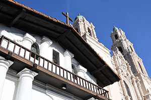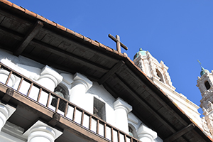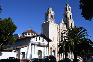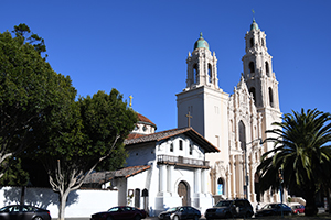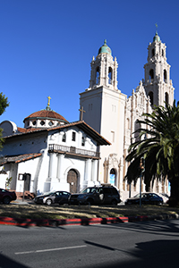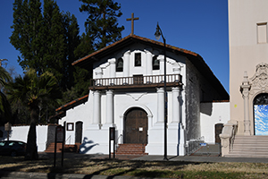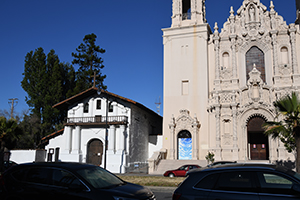 ![]() Front Facade of Mission Church and new church. Photo date: 2-7-04. |