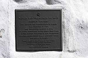 ![]() Mission San Francisco de Asis (Mission Dolores). This edifice begun in 1788, was dedicated August 2, 1794. An adobe structure in use since that time, it is the oldest building in San Francisco. |