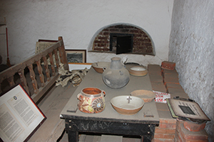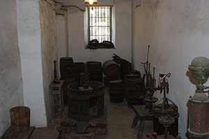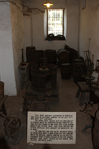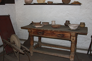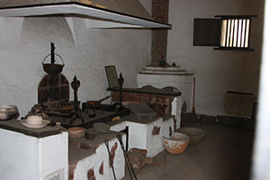 This is a replica of the original Kitchen which was built by the Franciscans and Gabrielinos. The original was destroyed by fire long ago. Father Ramoń Catalań C. M. F. began the rebuildin in 1936 with help from Pablo, Cayetano, and Efran. |
