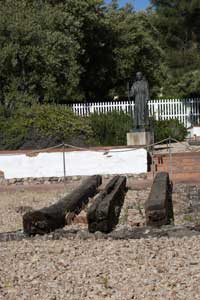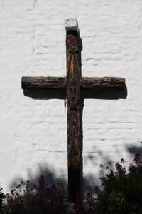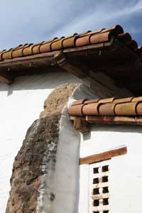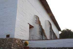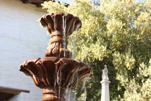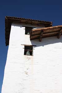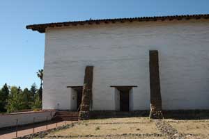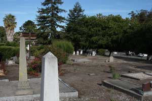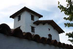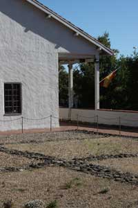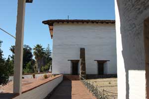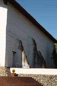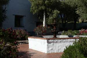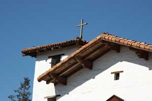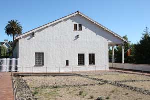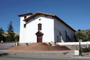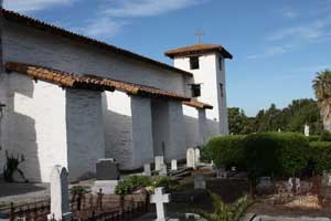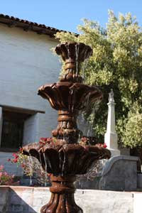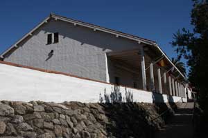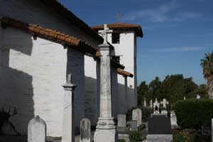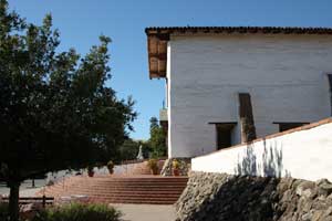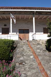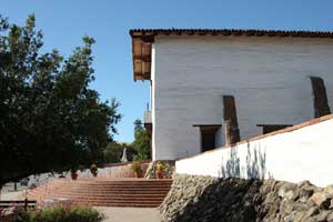 The first mission church was built a short distance north of the present site along with other temporary thatched-roof buildings. The first permanent church was completed in 1809. This adobe church was destroyed by an earthquake in 1868. A wooden church, looking very different from the adobe church, was built on the same site in 1869. A Victorian rectory was built between the wooden church and the last remnant of the adobe convento. In 1979, the rectory was removed and in 1982, the wooden church was sold for a dollar and moved to the nearby community of Burlingame. This cleared the way in 1984 & 5 to reconstruct the adobe church as closely as possible to the original - considered the most authentic reproductions of all the California missions. Today when you visit Mission San José, you will see the reproduction adobe church and about half of the original adobe convento. The old cemetery is accessible through the church. When the mission was first established, there were hostilities with the native population and convesions were slow. In time, San José had more converts than any other Northern California mission. As with all the missions, agriculture was important to Mission San José. In addition to 20,000 head of cattle and sheep, fruits, wheat, and corn were produced here. |