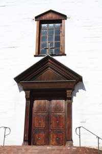 ![]() Cemetery side door to church. Note the skull and cross-bones above the door as a symble of a cemetery. Photo date: 12-26-03. |