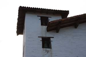 ![]() Front exterior of church, detail of bell tower. Photo date: 12-26-03. |