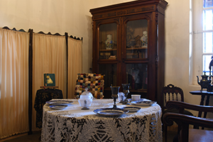 Exhibit of a dining room, probably not Mission era. |