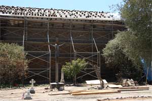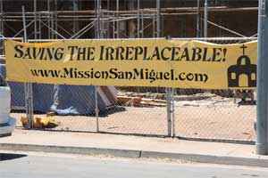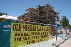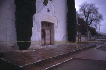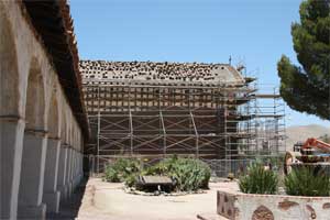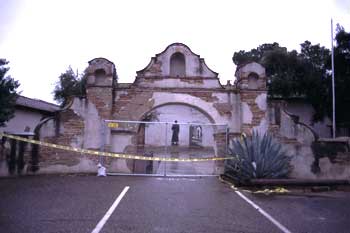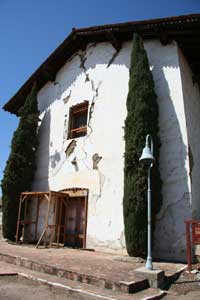 On the morning of December 22, 2003, about 10:00 am, an earthquake originating about 30 miles west of Mission San Miguel Arcángel struck the area and damaged the mission. Within a few weeks, most of the museum complex reopened to the public. The church will remain closed until a seismic retrofit can be performed. We had the bad luck to have planned a visit only three days after the quake and again two days later on our return trip, while the entire site was still closed. We visited the open portion of the mission a few months later and returned again several times and hope to return when the church is repaired and reopens. Earthquakes are a part of the mission story. Few missions do not have a story to tell of damage from earthquakes. The stone church at Mission San Juan Capistrano was never rebuilt. I personally have lived through two earthquakes that damaged Mission San Fernando. With your contributions, Mission San Miguel Arcángel will rebuild and the church, described as the best preserved of the missions, will reopen. It has been several years since the earthquake but finally restoration has begun. The Missions is hoping to celebrate Christmas Mass in the Mission this year (2009). Although restoration has begun, the Missions still needs contributions to complete the process and pay the bills. Contributions to the rebuilding can be made to: Old Mission San Miguel Parish 775 Mission Street P.O. Box 69 San Miguel, CA 93451-0069 |