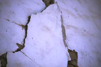 Closeup of cracks on front of church. Photo date: 12-27-03. |