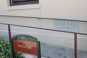 The fourth site, Mission Heights, was not far from the third and would eventually form the nucleus of the Santa Clara University. Construction began in 1818 and the quadrangle was dedicated August 11, 1825. This marked the fourth church on the fourth site. The new quadrangle was used as a boy's dormitory until secularization. After secularization, the property passed to private hands but was bought by Santa Clara College in 1860. The building was demolished in 1867 and the adobe spread about the site. By 1924 when the university completed Kenna Hall on the site, nothing remained of the fourth church. |
