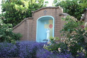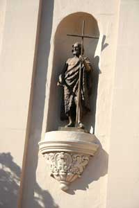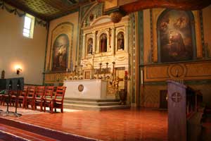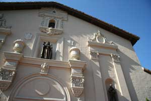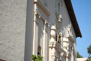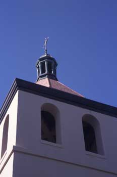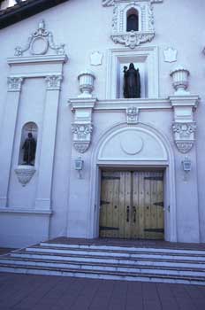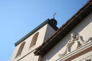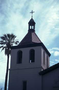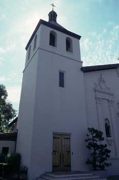 ![]() Front exterior of chapel. This is the sixth church built for Mission Santa Clara de Asis and sits on the the fifth site on which this mission built a church. 3-9-03. |