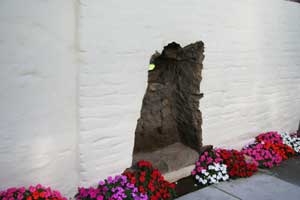 ![]() These pavers mark the location of the third church which was built in 1731 and destroyed in 1818. Photo date: 12-26-03. |