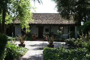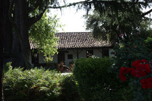 The third mission site was developed while the second was still in use with the cornerstone laid on November 19, 1781. The church was dedicated on May 16, 1784 and the quadrangle and other structures were built over a thirty-five year period. This complex was made of adobe and tile. As each new structure in the fourth site was completed, the roof tiles of the old buildings in the third site were stripped off for reuse. By the end of the 18th century, the adobe of site three had completely melted back into the earth from which it had come. In 1911 the ruins were found while digging for a gas line and today the outline of the church and part of the quadrangle is emphasized as part of the landscaping and in a street at the northeast corner of the Santa Clara University campus. The only building remaining from site three is the Pena Adobe, now the Santa Clara Women's Club at 3260 The Alameda (between Benton and Franklin Streets). |