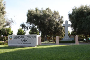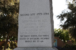 The mission was moved south to higher ground away from the river where it operated until 1784. A marker and small garden are at the northeast corner of De La Cruz Boulevard and Marten Street. |