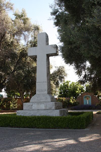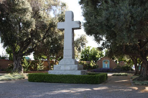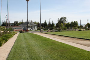 ![]() In the lawn, are pavers to mark locations of other mission buildings. Photo date: 12-26-03. |