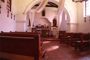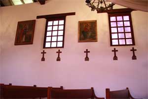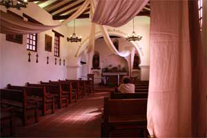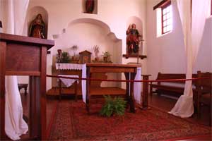 ![]() Altar of reproduction church. The tabernacle doors are from the original church. 11-29-03. |