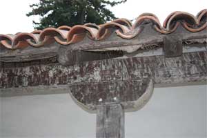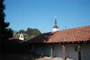 ![]() Note the top of the bell towers to the reproduction half size mission church and the replacement more modern church in the distance. 11-29-03. |