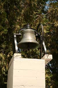 ![]() If you should ever find some mission bells without clappers in your attic, please contact the mission. Photo date: 1-24-04. As the sign says... |