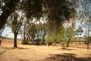 This beaten wooden sign beside the remnants of the original floor says: Floor of the old mission, 1818. This floor uncovered in September 1963 was laid by the Padres and Indians of Santa Ysabel Mission in 1818. It extends north for over 300 feet. It included chapel-workshops etc. In 1818 - 500 Indians received baptism on this floor. |