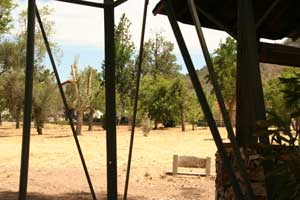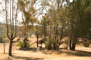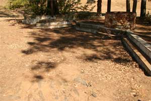 ![]() Display of cross, well, and wind mill with fragments of floor at site of original mission buildings. Photo date: 1-24-04. |