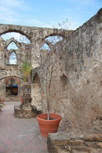 The Convento was a housing unit for missionaries. In 1785 this convento haqd nine rooms on the lower lever and five on the upper. The flat roof allowed views of the surroundings. These ruins are an incomplete reconstruction begun by Benedictine monks in 1861.