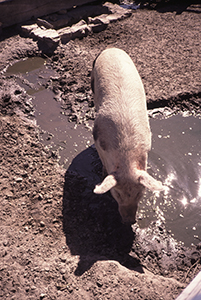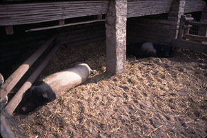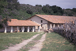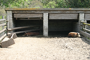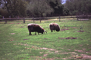 | Large area with animals typical of those that would have been kept at the Mission. | |