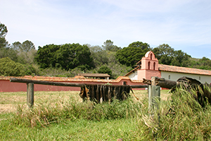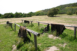 | Drying leather. Exporting leather was a source of income for the Missions. Cattle were raised for leather, not meat. | |