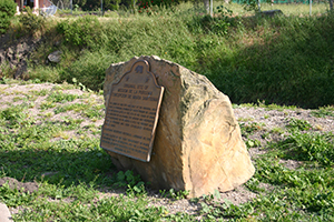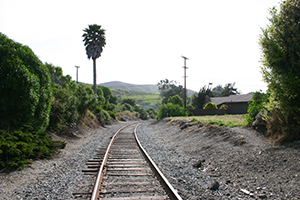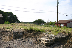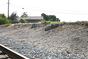 | The original sites is surrounded by homes and a railroad track on one side. | |