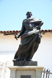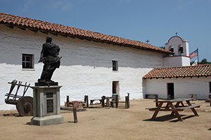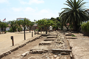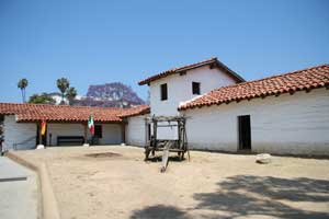 In April of 1782, Lieutenant José Francisco Orrtega and a party of soldiers and settlers arrived in at a site between the Santa Ynes Mountains and the Pacific Ocean. El Presidio Real de Santa Barbara, the fourth presidio, was founded in Santa Barbara on April 21, 1782, four years before the founding of Mission Santa Barbara. On that day, Father Junípero Serra celebrated Mass and thus, established the city of Santa Barbara. Santa Barbara Presidio provided security to the missions along the Central Coast between San Fernando and the Pueblo of Los Angeles and San Luis Obispo. Lieutenant José Francisco Ortega, the first Comandante, was succeeded in 1784 by Lieutenant Felipe de Goicoechea who commanded until 1802. The original construction was a palisade of vertical logs joined by horizontal sticks and covered with mud. Between 1784 and 1788, the adobe structure was built. The adobe structures formed a quadrangle about four hundred feet on each side with a nine-foot outer wall completed in 1789. Between the outer wall and the adobe buildings were small individual yards. In the center of one wall was the church and in the opposite wall was the gate. At two opposite corners were guard towers from which the entire perimeter of the Presidio could be observed. Later, about 1792, the original Chapel, too small and ready to collapse, was replaced with a larger Chapel. A new outer defense wall was constructed on this side. Earthquakes in 1806 and 1812 caused extensive damage to the structures. After the Mexican Resolution in 1821, all people refusing to pledge loyalty to the new government were expelled. The Presidio further deteriorated and by the 1840, the Presidio was in partial ruin. With the arrival of Colonel John C. Fremont and the US occupation, the Presidio ceased to be a military installation. El Presidio Real de Santa Barbara was the last Presidio to end service. The Presidio had deteriorated and was no longer of importance when the streets of Santa Barbara were laid out in the 1850as and 1860. Now, the reconstructed structures yield to streets and an intersection is located just inside one corner of the central plaza. Other, now historic, building were later built on the site, including Santa Barbara's China Town. Parts of the Presidio were demolished in 1925. The presidio had deteriorated and the city was growing when the Santa Barbara Trust for Historic Preservation began to preserve and reconstruct the site in 1963. The reconstruction of the Chapel was completed in 1985. Careful archeological excavation uncovered the original stone foundations, all that remained, which guided the reconstruction of the Chapel. Part of the surviving structure is El Cuartel, the second oldest residence in California. (See San Diego Old Town for the oldest residence) El Cuartel was the residence of the last soldier who guarded the West Gate of the Plaza de Armas. Current Archaeological work is preparing the original stone foundations for reconstruction of a second corner. A block away from the Presidio is Casa de la Guerra, the home of Presidio Commandant José de la Guerra. This U-shaped home was built in 1820. The Santa Barbara Trust for Historic Preservation has been researching and restoring this structure since 1990. |