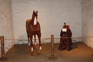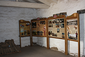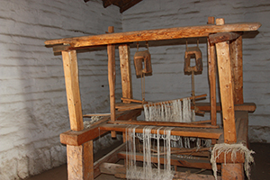 | This reconstruction of the Comandancia of the Presidio was built in 1992 to replicate the 1787 original which served as the headquarters for Comandante Filipe de Goicoechea and the following two commandants. Originally the suite consisted of four rooms, the oficina (office), zaguán (entry), sala (living room), recamara (bedroom). The bedroom and part of the livingroom were demolished for the construction of Santa Barbara Street. The comandancia was damaged by an earthquake in 1812 and converted into a store room and the commander moved to the area across Santa Barbara Street. | |