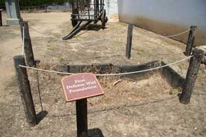 | New gate in northwest outer defence wall, near west corner. Note the concrete core with adobe blocks surrounding. | |
