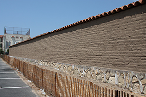 | Southwest wall as of May 15, 2010. Note the use of concrete within the adobe to stabalize the wall. | |
