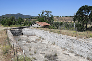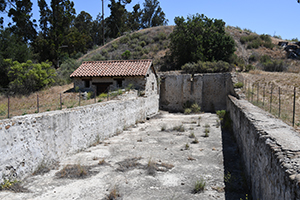 ![]() From east mill looking toward west mill with Mission Santa Ines beyond. |