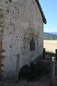 Built 1820 by Joseph Chapman, Bostonian, deserter from Pirate Bouchard who burned Ortega Adobe, Rancho de Refugio. Chapman arrested, sentenced to firing squad but paroled to Mission Santa Ines. As Master Workman, built this New England type Grist Mill. and duplicate at Mission San Gabriel. Married Guadalupe Ortega at Mission Santa Ines. Founding important California family. Marker placed by California Centenial Commission in cooperation with Reina Del Mar Parlor No. 126. N. D. G. W. Dedicated September 9, 1950 |