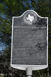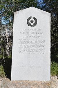 TEXT HERE This Mission had three locations: San Gabriel River in 1749, in Milam County San Marcos River 1755 This location on the Nueces River in 1762 for Lipan Apaches Abandoned 1769 100 Lipan-Apaches lived at the Mission. The Mission included a arge chapel made of thatch, a house, and possible other structures The Mission was abandoned due to inadiquate defence, raids by Comanches and Apaches. Relocated here from Nuestra Señora de la Candelaria |
